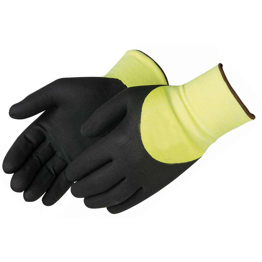 - Black microfoam nitrile coated on palm, fingers, and knuckles
