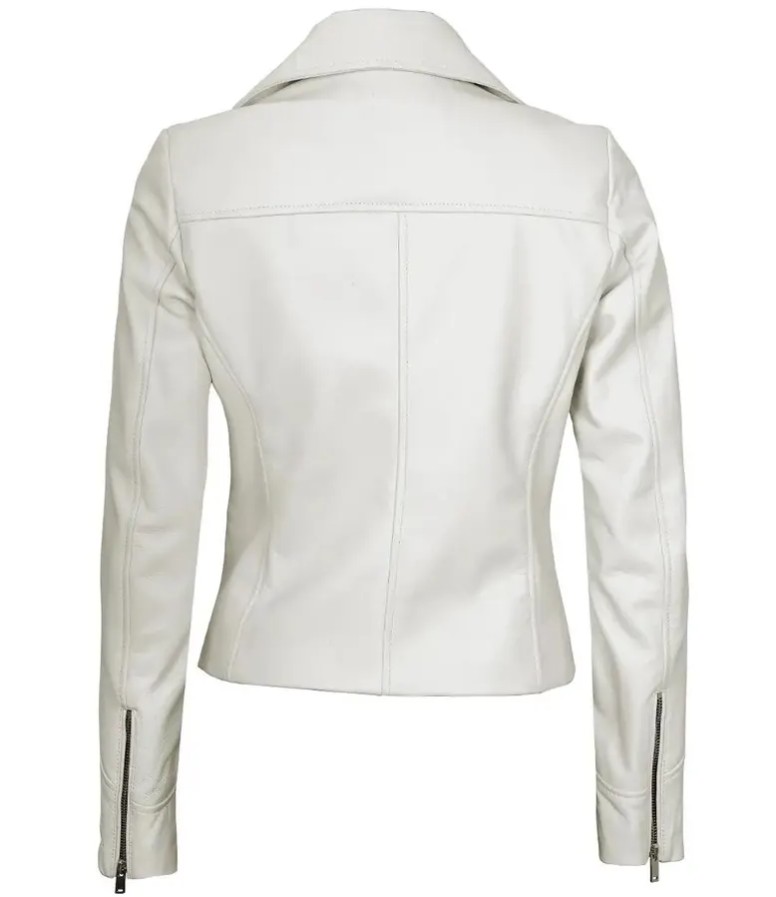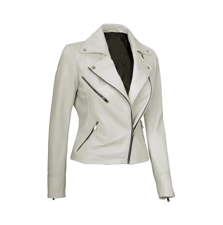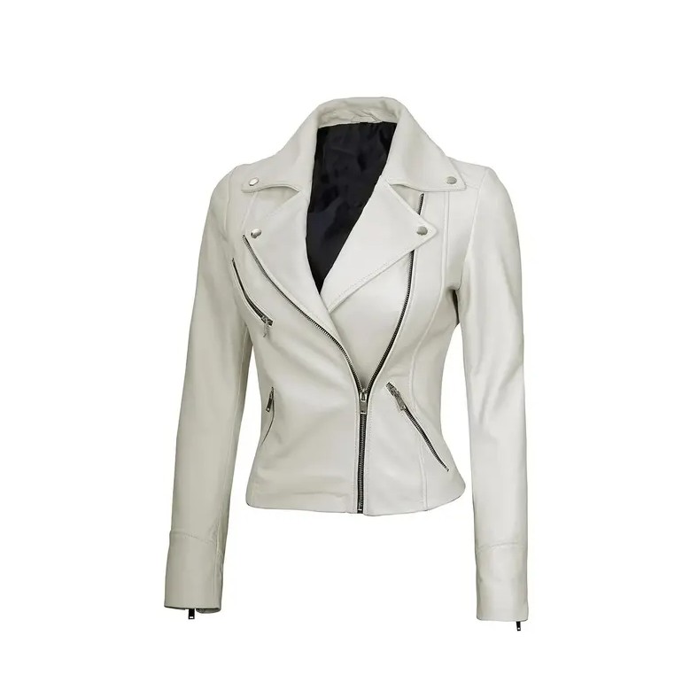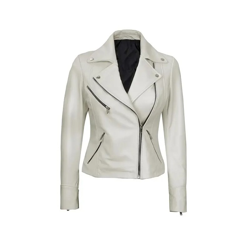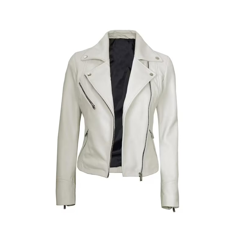 Women’s Off White Leather Jacket/ Real Lambskin Leather Biker Style